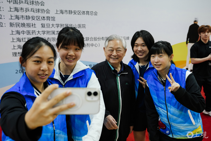 志愿者围着徐寅生自拍——新民晚报记者 李铭珅摄(下同)